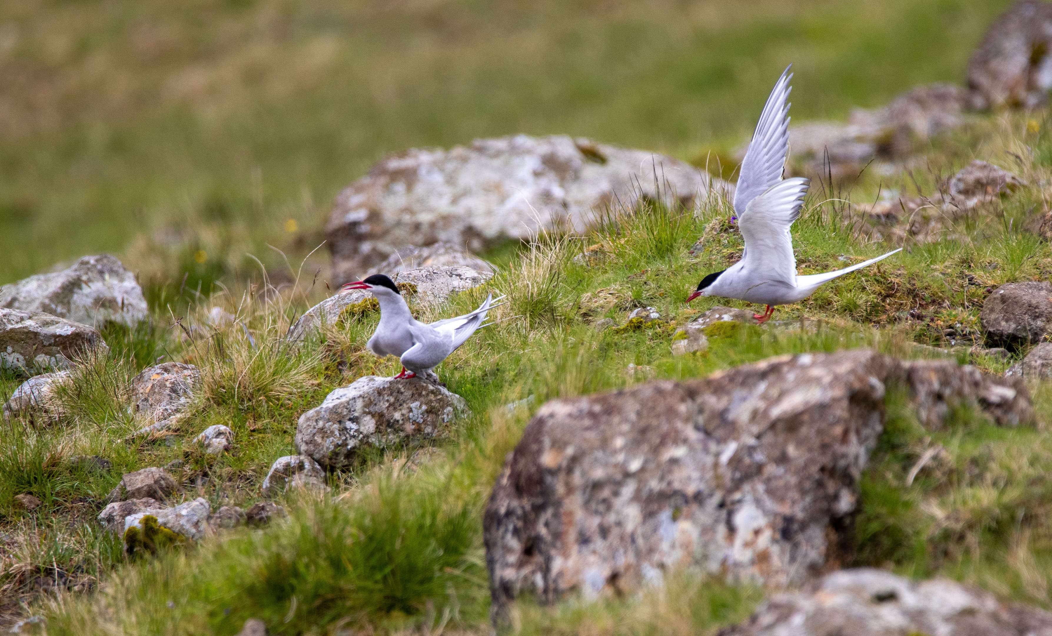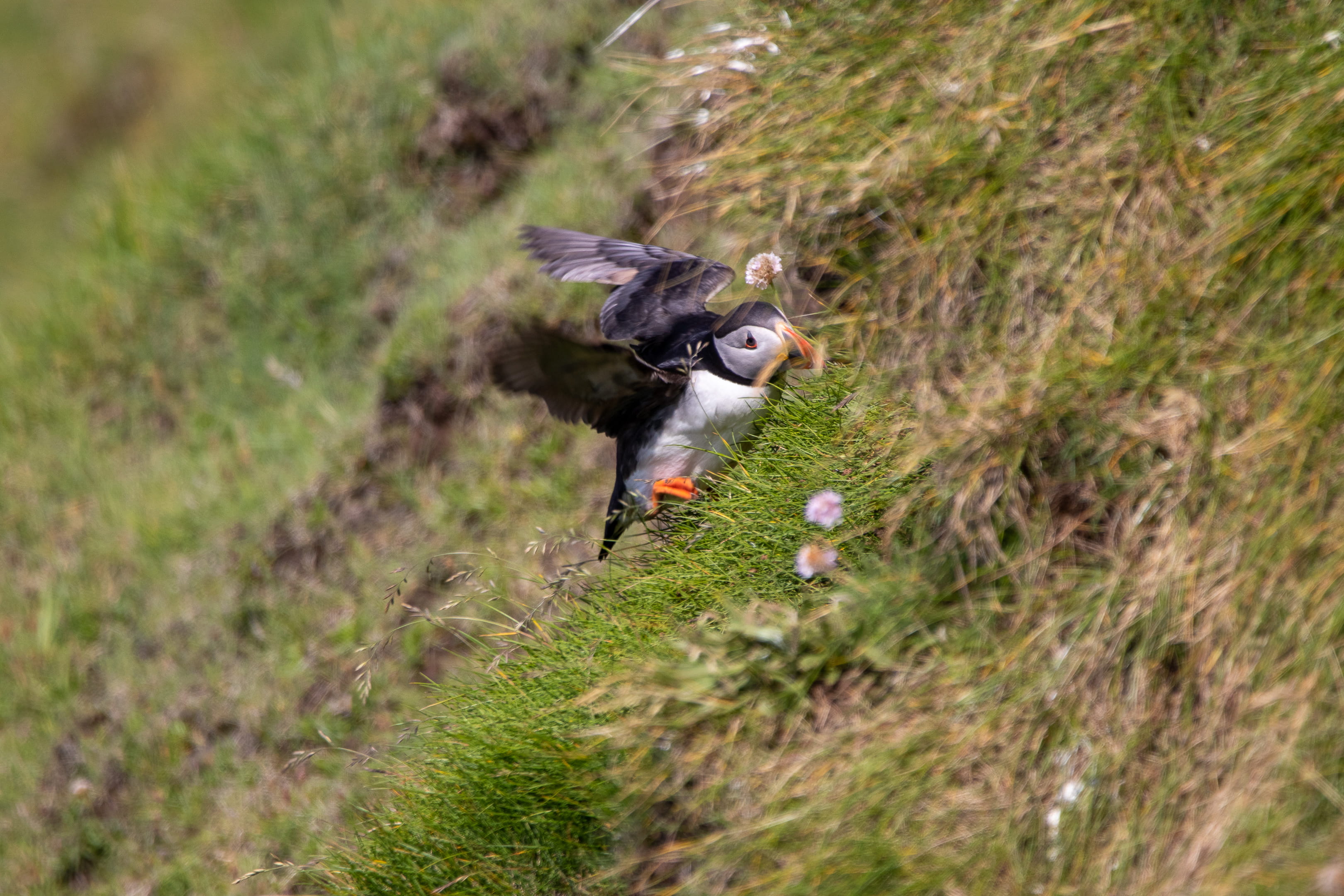 Nous avons pu observer de nombreux oiseaux lors de notre semaine sur les îles Féroés, notamment beaucoup d’oiseaux marins et des litoraux que l’on retrouve aussi sur les côtes françaises (mouettes rieuses, goelands, canards, etc). Nous avons pu observer de près des courlis, des pluviers dorés et des huitriers pie en nombre. On a eu la chance de voir une colonie de macareux qui nichait à Gasadalur sous un soleil radieux.
