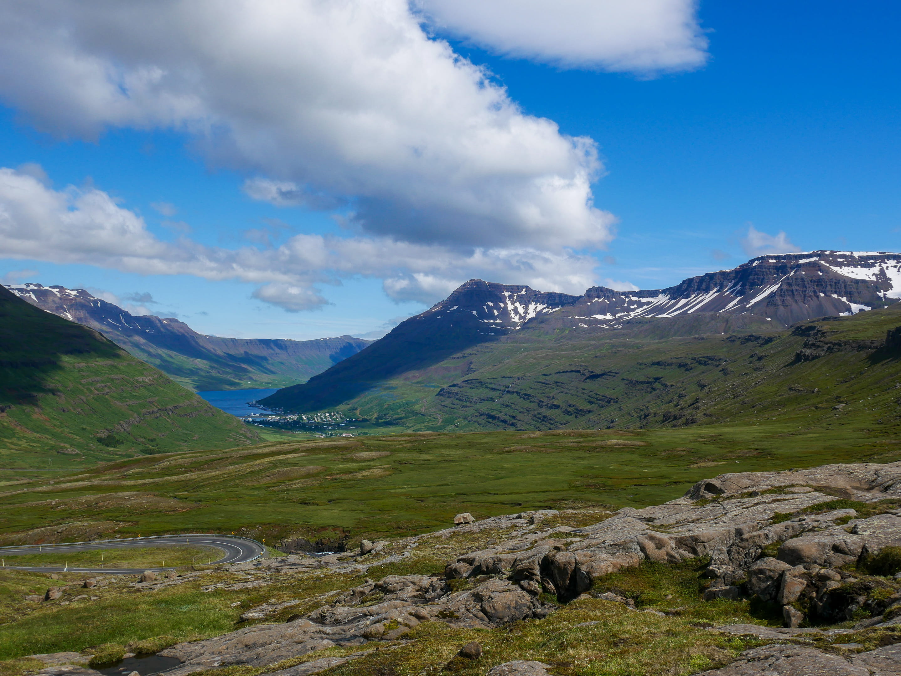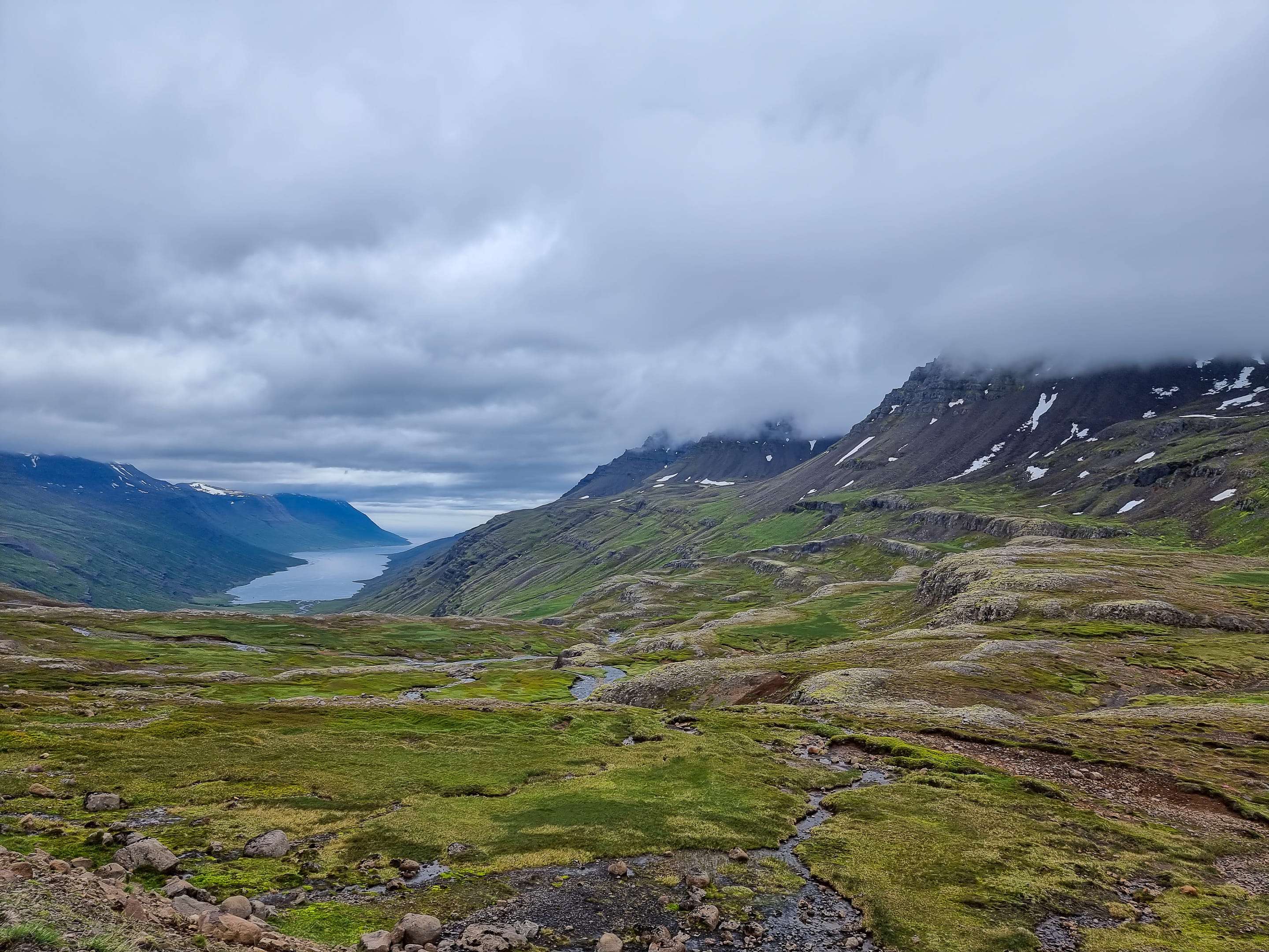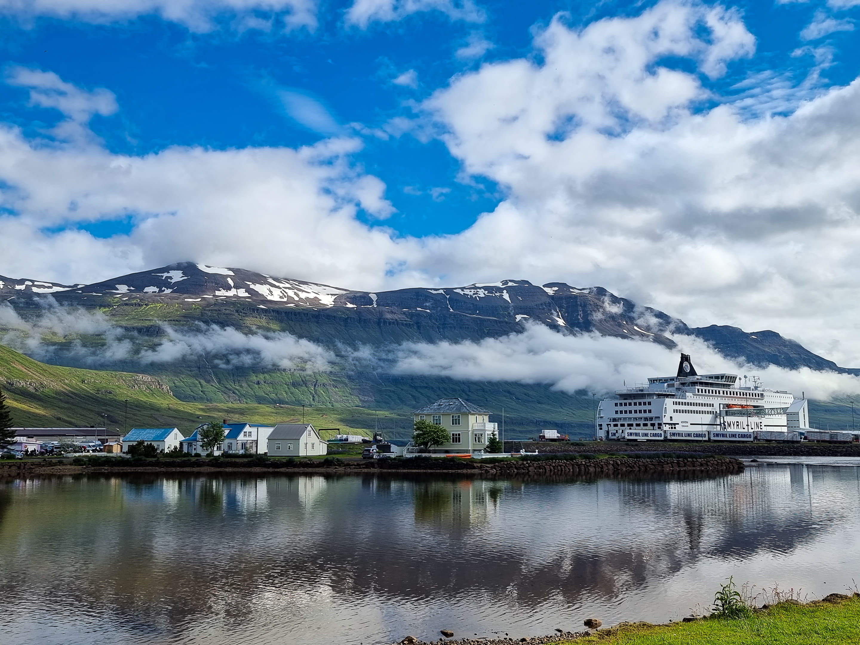 Après une nuit dans le bateau, nous arrivons à 8H30 (heure islandaise) à Seydisfjördur, un petit port de l’est de l’Islande. La nuit fut très calme en mer, on a grandment apprécié ! Nous avons désormais 2h de décalage avec la France et nous changeons de monnaie pour la couronne Islandaise.