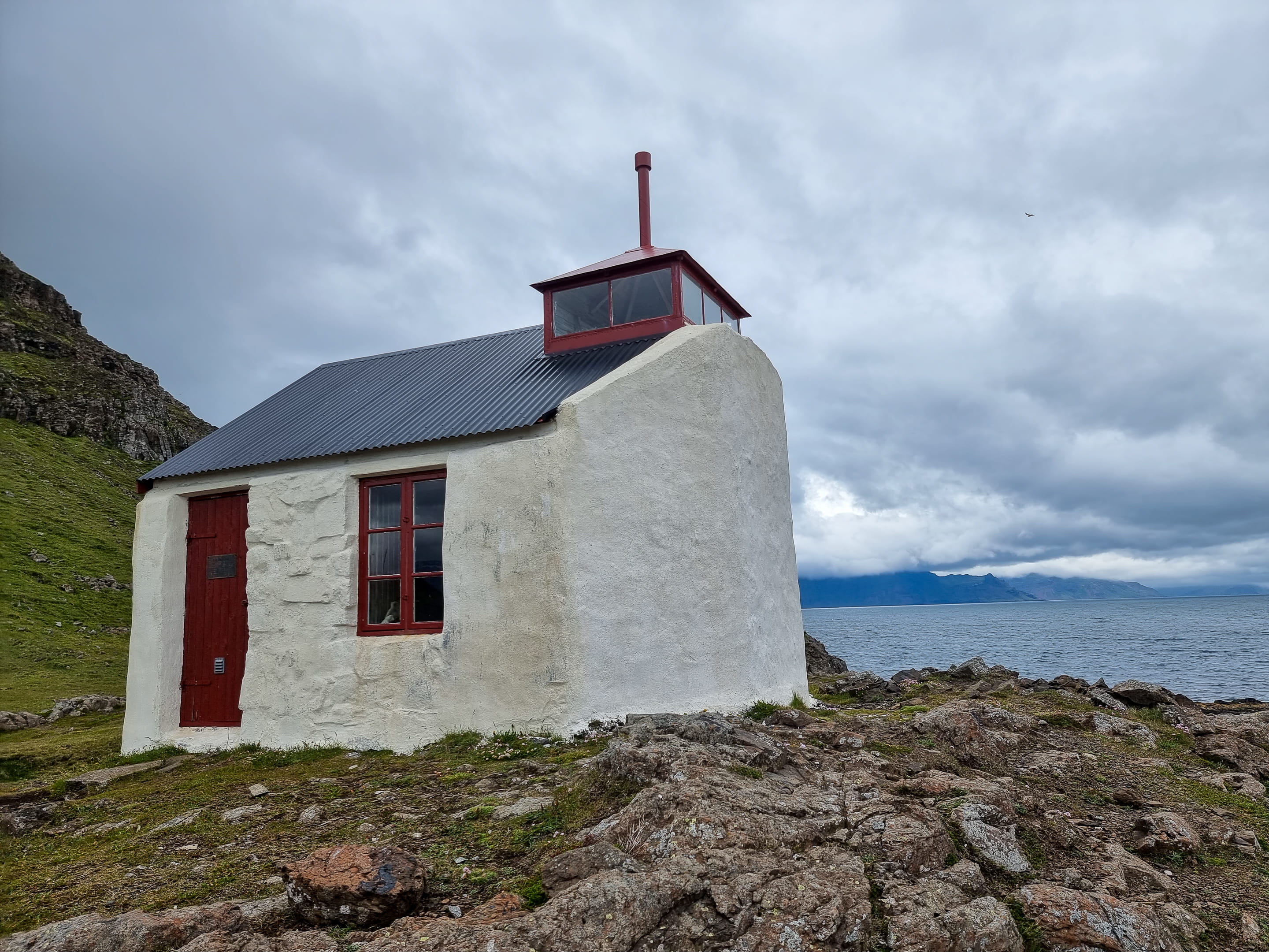 Nous passons aussi une journée à explorer le fjord de Mjóifjödur où nous allons jusqu’au bout de la route, jusqu’aux phares sur la pointe. Oui, il y a bien deux phares, l’un ancien et tout petit, et l’autre juste à côté toujours en activité (mais très moche, d’une couleur orange fluo pas du tout photogénique). On ne se souvient pas avoir vu un phare si bas en France.