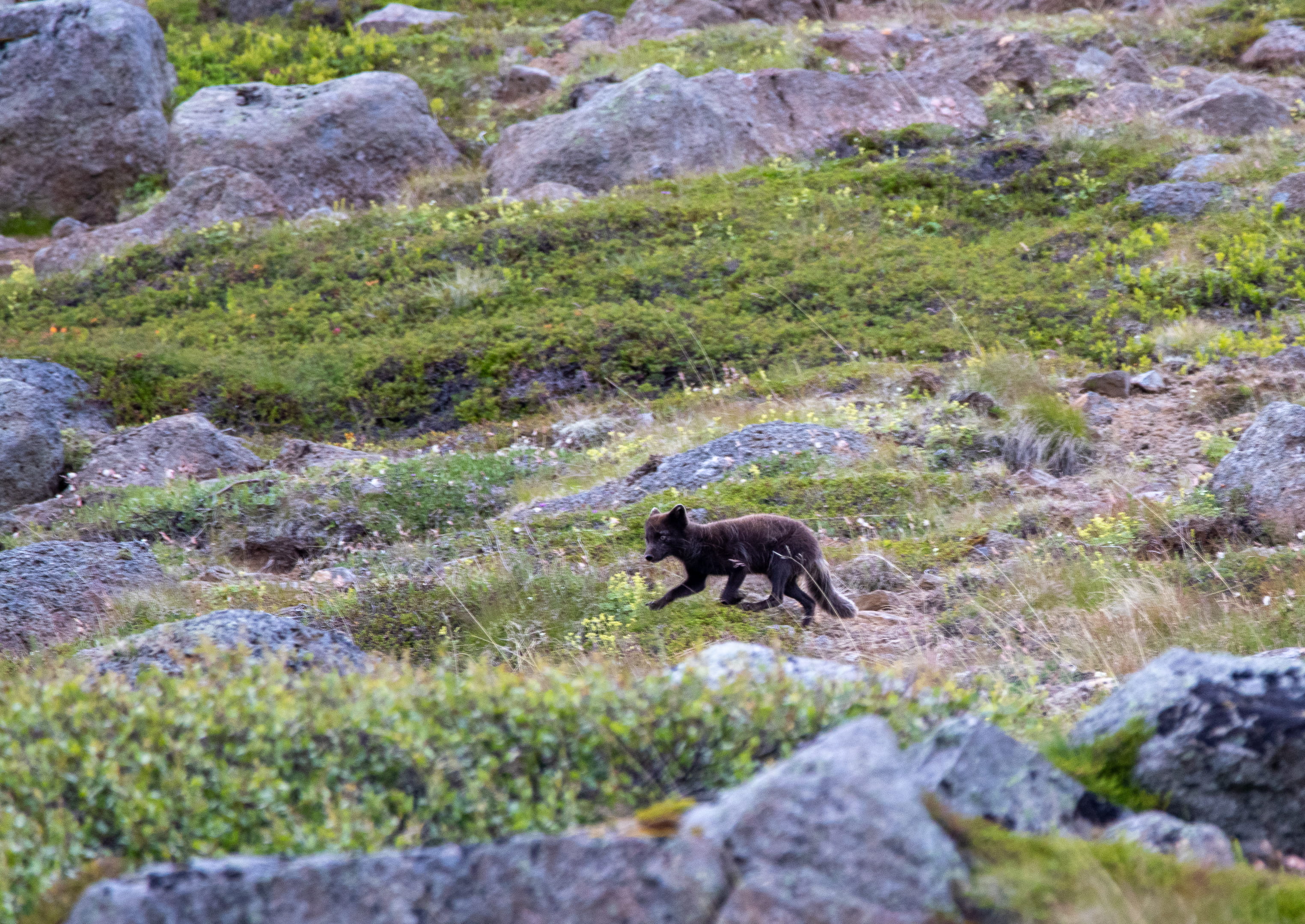 C’est le seul mammifère qui était présent avant l’arrivée de l’homme en Islande. On peut en voir dans les pays tout autour du pôle Nord. Leur pelage devient tout blanc en hiver. Il peut survivre jusqu’à -45°C grâce à une fourrure particulièrement dense. Il se sert de sa queue pour se protéger la tête et les pattes du froid glacial. Ce petit renard a longtemps été chassé pour sa fourrure, qui est l’une des plus chaudes au monde. Il est encore beaucoup chassé en Islande par les éleveurs de moutons.