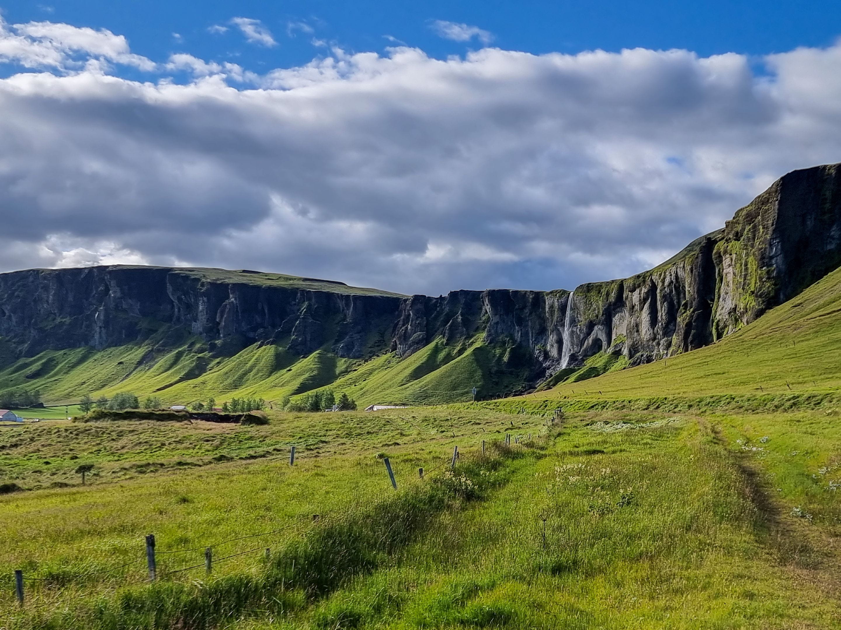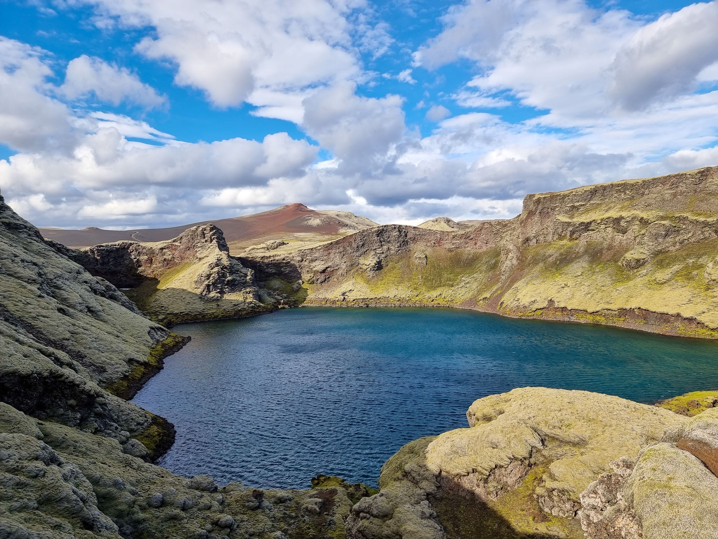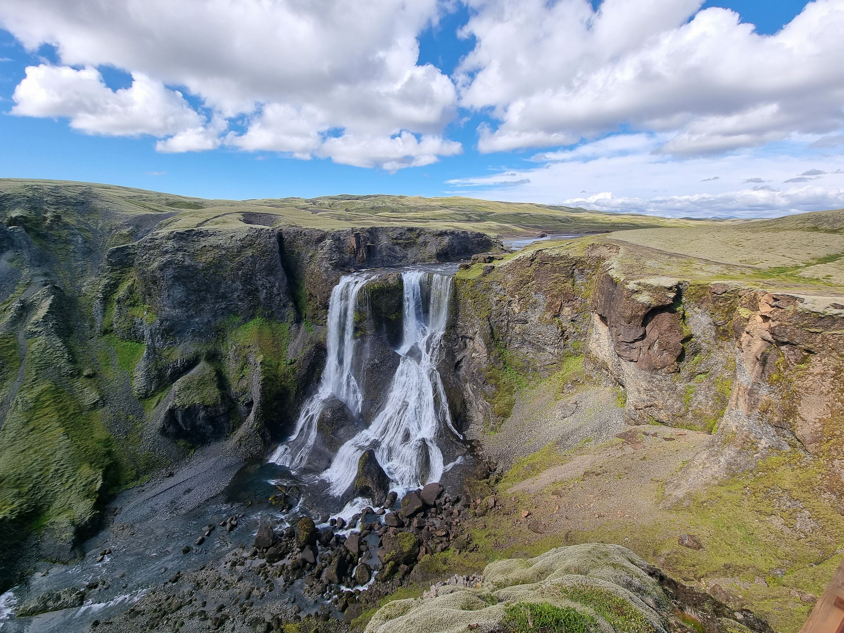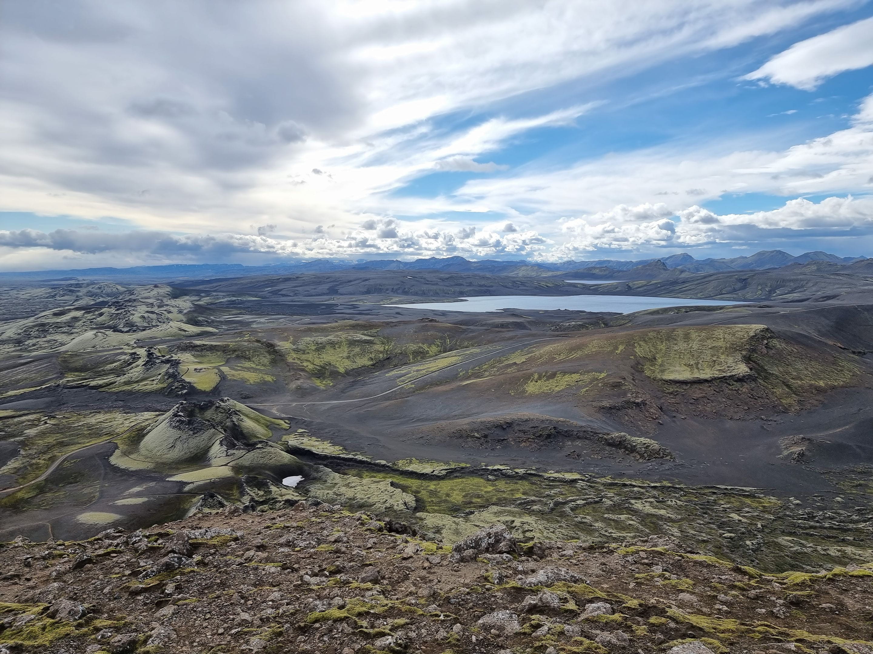 Nous continuons notre route au sud du pays et nous faisons un détour en prenant la piste F206 vers le Lakagígar. C’est une chaine de cratères d’une trentaine de kilomètres qui explosa en 1783 et resta en éruption pendant près d’un an. Ce fut une catastrophe terrible pour l’Islande et même pour l’Europe. Il y eut près de 10 000 morts en Islande, et le ciel s’assombrit dans toute l’Europe causant de mauvaises récoltes et des famines. La température baissa aussi fortement. On dit que cet évènement est à l’origine de la révolution française quelques années plus tard.