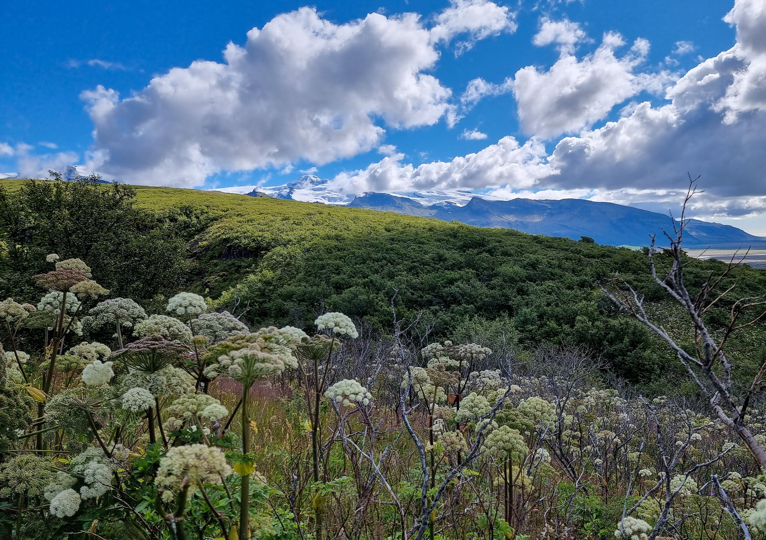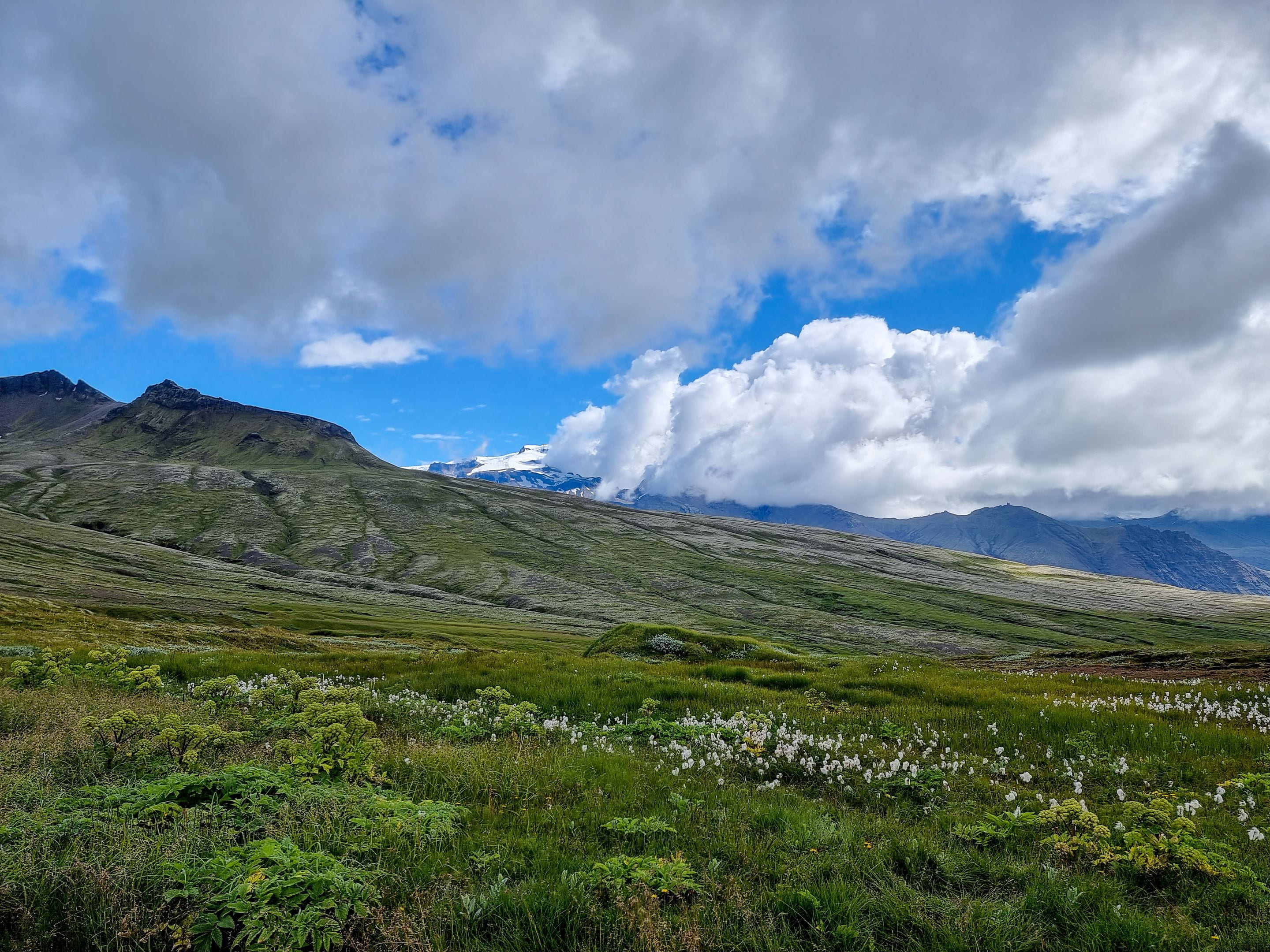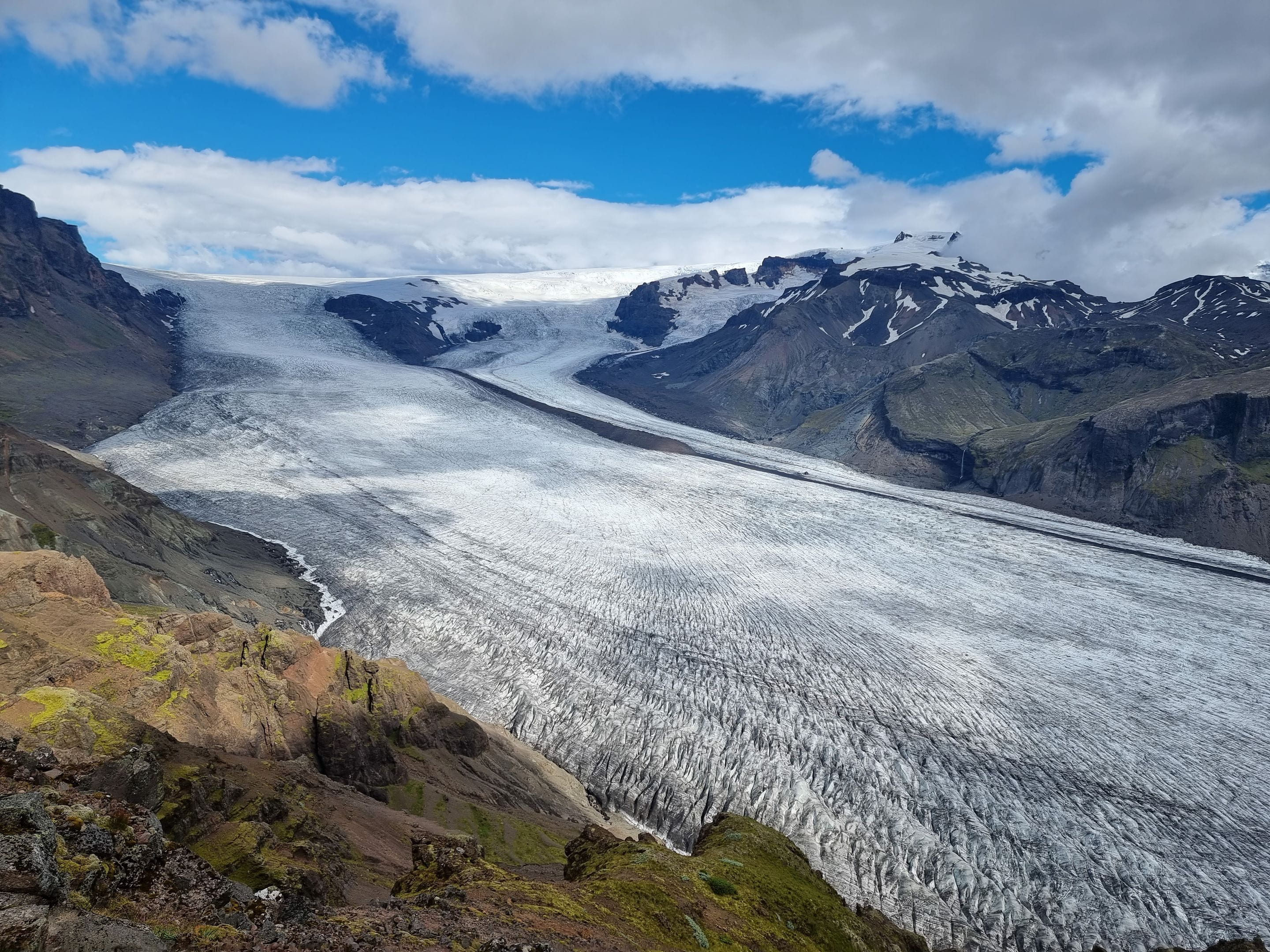 Nous partons découvrir de plus près le Vatnajökull en partant de Skaftafell grâce à deux belles randonnées. Le Vatnajökull est une immense calotte glaciaire aussi grande que la Corse et couvre près de 14% du territoire islandais. Il y a par endroit jusqu’à 1km d’épaisseur de neige ! Des volcans rentrent parfois en éruption sous la glace, ce qui entraine des innondations importantes.