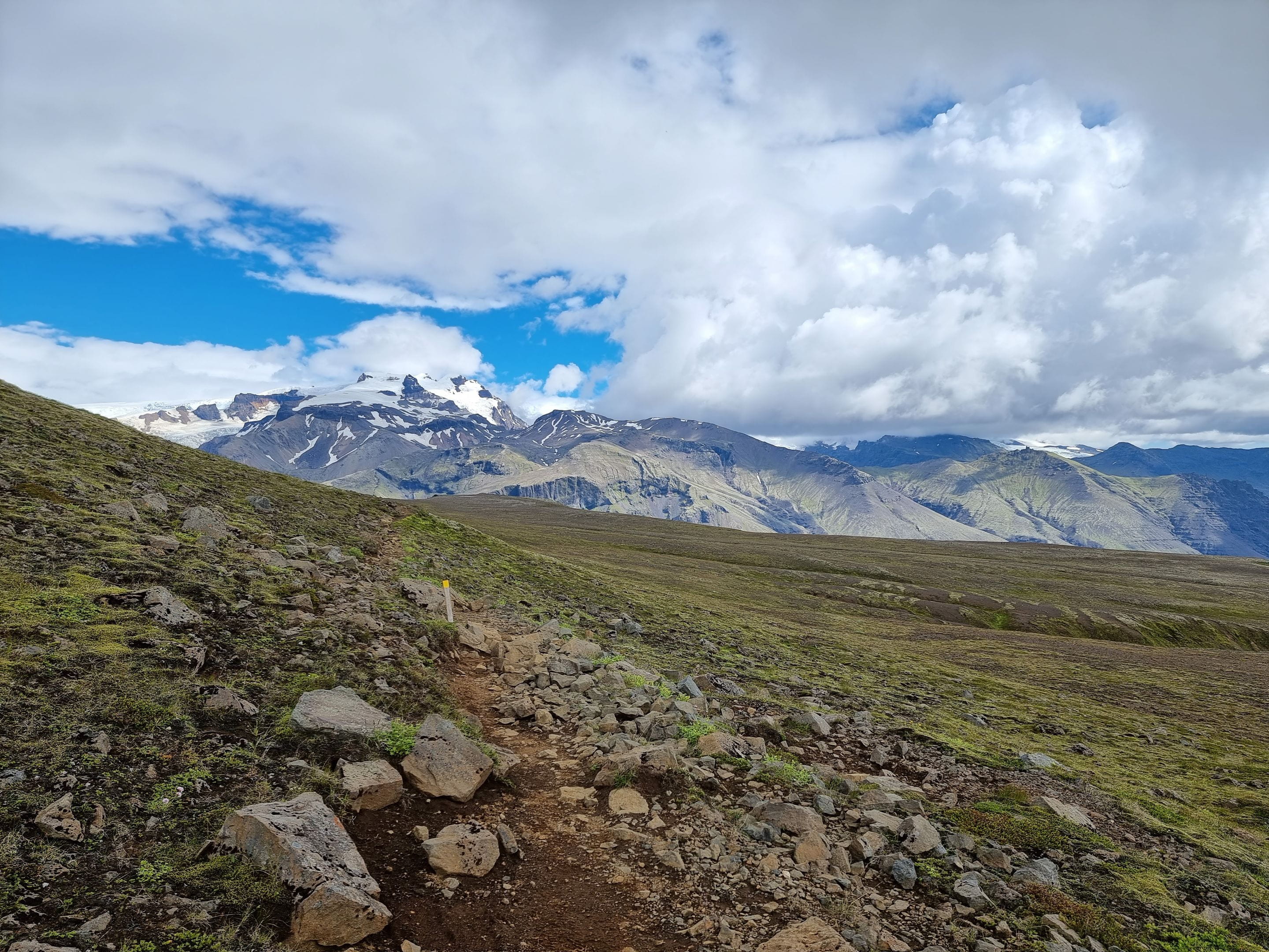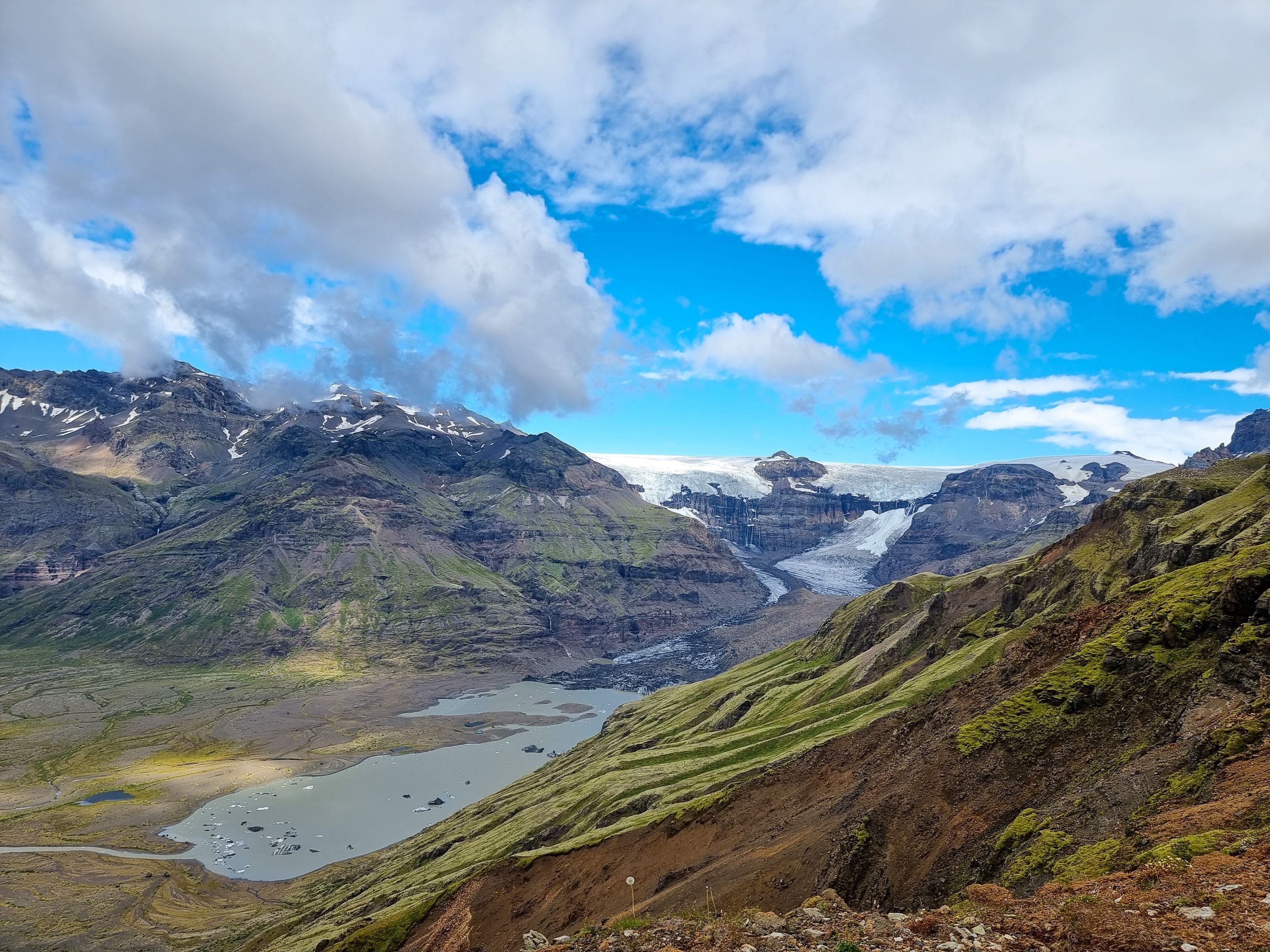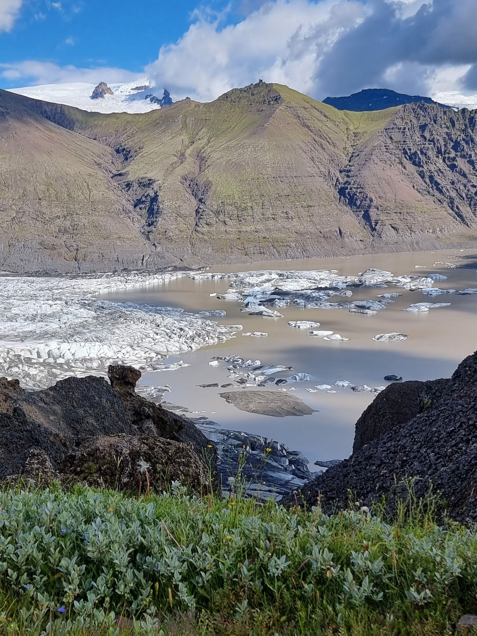 Nous partons découvrir de plus près le Vatnajökull en partant de Skaftafell grâce à deux belles randonnées. Le Vatnajökull est une immense calotte glaciaire aussi grande que la Corse et couvre près de 14% du territoire islandais. Il y a par endroit jusqu’à 1km d’épaisseur de neige ! Des volcans rentrent parfois en éruption sous la glace, ce qui entraine des innondations importantes.